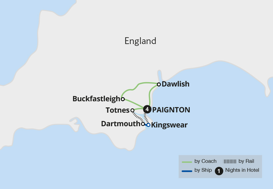 Experience the timeless charm of the stunning English Riviera on a journey filled with nostalgic railway journeys and coastal delights. Take in the scenery aboard the Dartmouth Steam Railway and South Devon Railway, enjoy a traditional Devonshire cream tea in Dawlish, visit the tranquil Buckfast Abbey and unwind on a picturesque boat cruise. ...