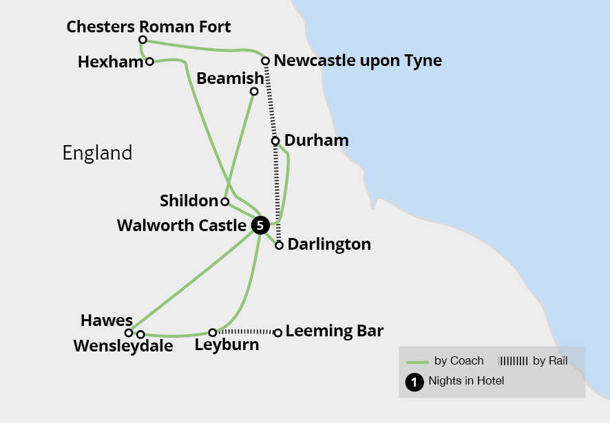 Experience the historic cathedral city of Durham on this five-night break, based at the majestic 12th-century Walworth Castle in the heart of County Durham. Discover some of the region's most famous landmarks, such as Chesters Roman Fort and Hadrian's Wall, and step back in time to other historic periods during visits to the captivating...