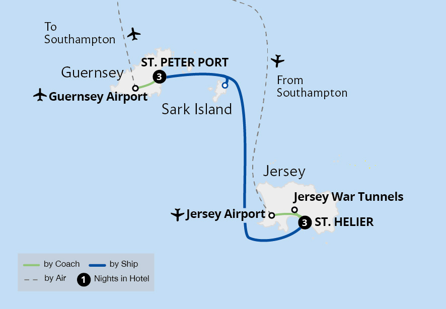 Uncover the hidden charm of the Channel Islands on a scenic escape to Guernsey, Jersey and Sark, a trio of isles brimming with natural beauty and fascinating heritage. Explore the dramatic coastline and historic sites with local guides, from the poignant Jersey War Tunnels to the timeless Castle Cornet in Guernsey. Admire tranquil bays...