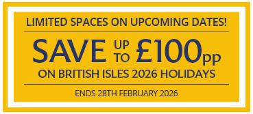 Save up to £100pp on British Isles 2026 holidays, when you book by 28th February 2026.