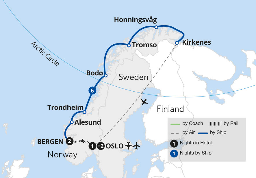 Discover glorious Norway in summertime, with guided tours and time to explore vibrant Oslo and charming Bergen before embarking on a six-night Arctic cruise through some of the world's most magical fjords. On our epic voyage north we mark the crossing of the Arctic Circle with a ceremony, then continue into Norway's Arctic region, experiencing...