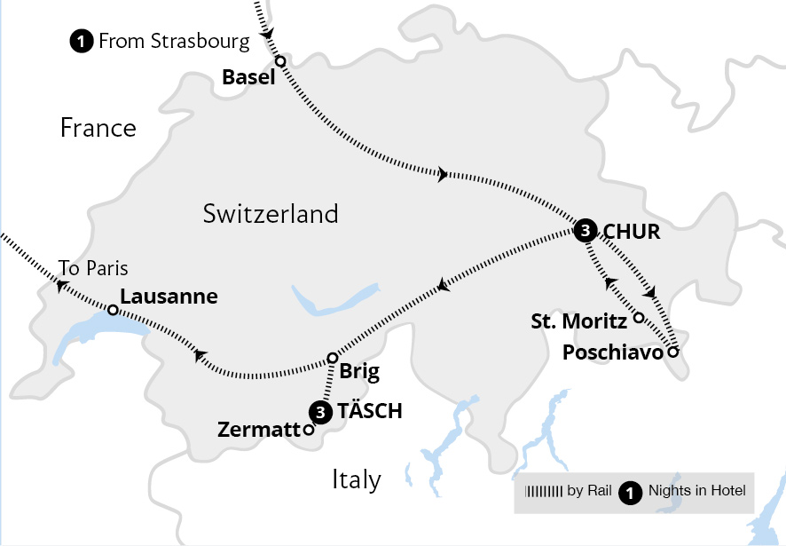 Enjoy Switzerland's warm hospitality and astounding landscapes from traditional hotels in historic Chur and idyllic Täsch, soaking up dramatic scenes of soaring mountains and glaciers aboard two iconic trains. Cross the Alps on the Bernina Express, admiring glacier views enroute to Poschiavo. The show continues as you bask in the alpine ...