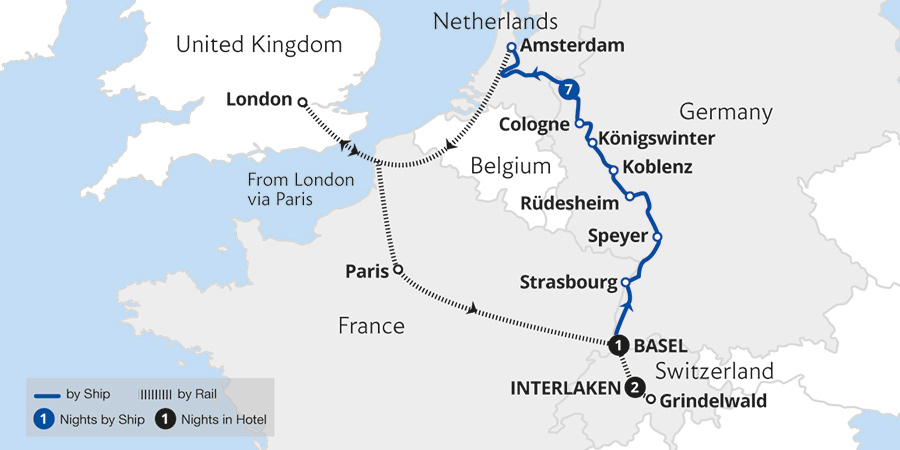 Your holiday begins this morning as we meet the Tour Manager at London St Pancras before boarding the Eurostar to Paris. From the French capital, we continue by rail to Basel.