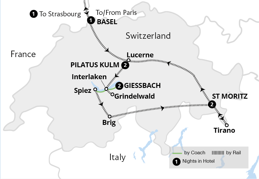 Staggering mountain peaks and serene alpine lakes provide the extraordinary setting for this holiday as we travel in First Class all the way, including on the iconic Bernina Express and Glacier Express. Staying in the Engadine Valley and the popular mountain resort of Zermatt provides idyllic bases from which to explore the Swiss Alps by rail...