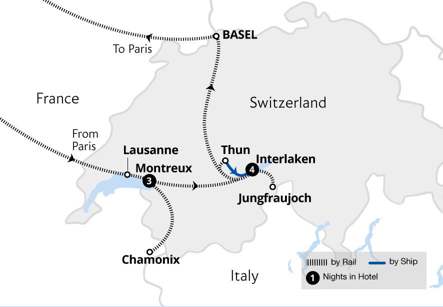On this sensational holiday, travel from Montreux on the shores of Lake Geneva to the mountainous surroundings of the Jungfrau Massif. Explore Château de Chillon, sail on Lake Geneva and cross the Alps to the French mountain town of Chamonix on the Mont Blanc Express. Boarding the GoldenPass Express, admire views of the Bernese Alps...