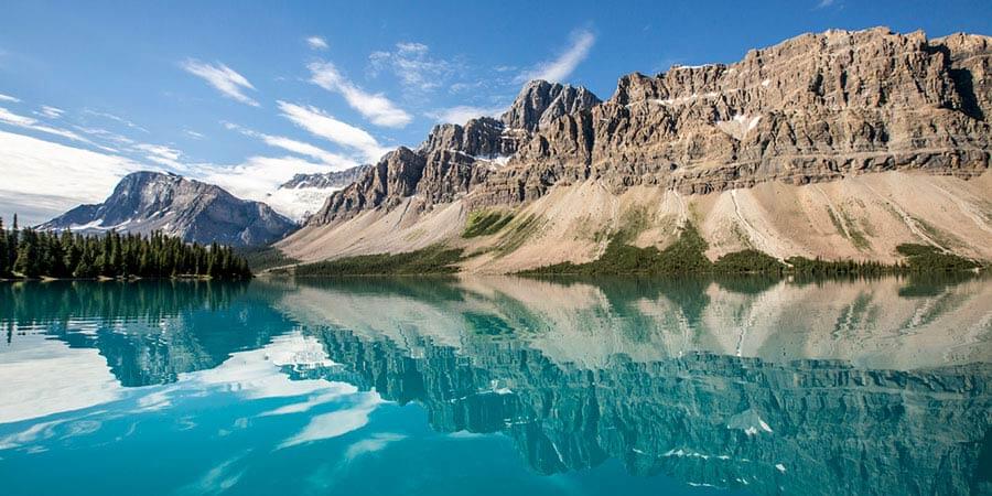 Bow Lake is one of Banff National Park's most iconic alpine lakes. Sourced from the Bow Glacier, its glistening turquoise waters perfectly mirror the towering peaks of the Wapta Icefield, creating breathtaking views in every season. From bright summer days to the chill of the winter, Bow Lake embodies the beauty of the Canadian Rockies.